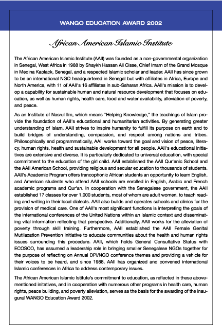 World Association of Non-Governmental Organizations is a 501(c)(3) nonprofit organization registered in the United States.