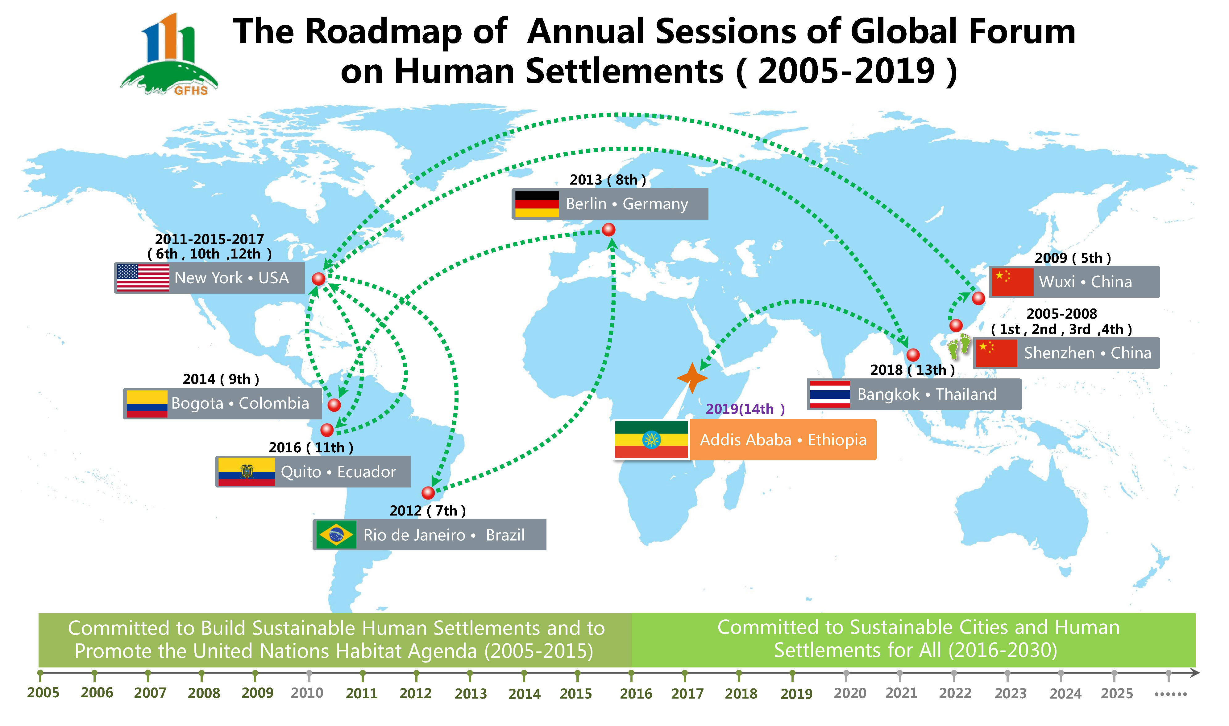 The 14th Global Forum on Human Settlements (GFHS 2019) is being planned to be held on September 5th - 6th, 2019 in the United Nations Conference Center in Addis Ababa (UNCC-AA). As one of the most important global congresses on the urban agenda, sustainable cities and human settlements, as well as an observance of Urban October, GFHS 2019 will focus on the theme, Sustainable Development of Cities and Human Settlements in the Digital Era, and will be supporting campaigns on smart city and the use of digital technology for inclusive, safe, resilient and sustainable cities.